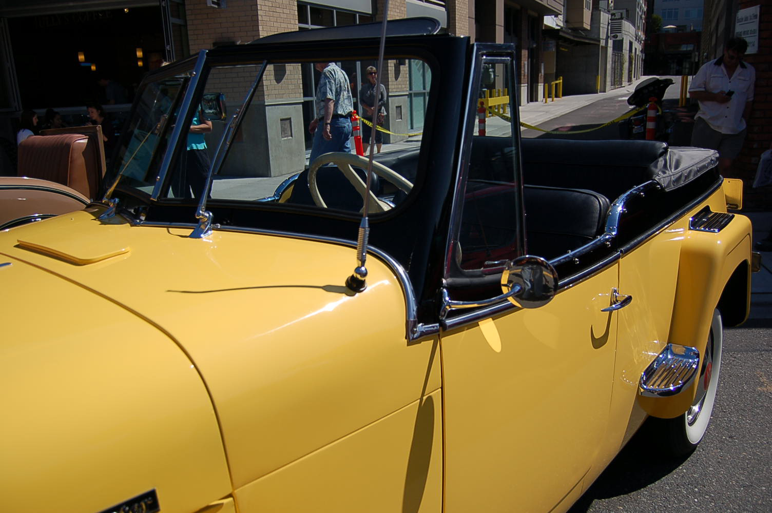 the "Jeepster". Initially, the Jeepster's design showed smooth fender-less sides and no doors, but later Stevens added doors and